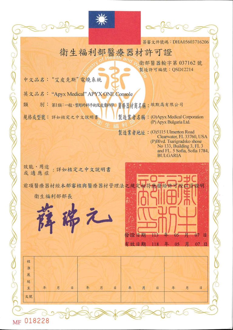 - “艾皮克斯”電燒系統中文仿單,衛部醫器輸字第037162號。
